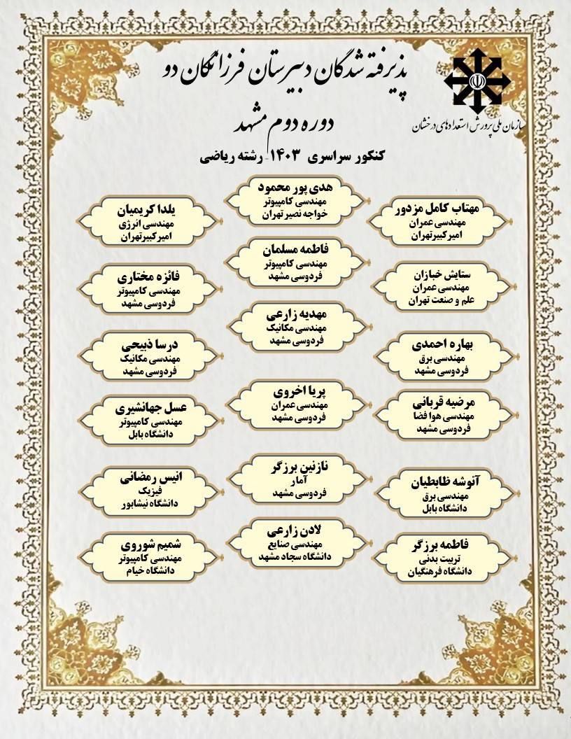 افتخار آفرینان رشته ریاضی در کنکور 1403 دبیرستان فرزانگان 2